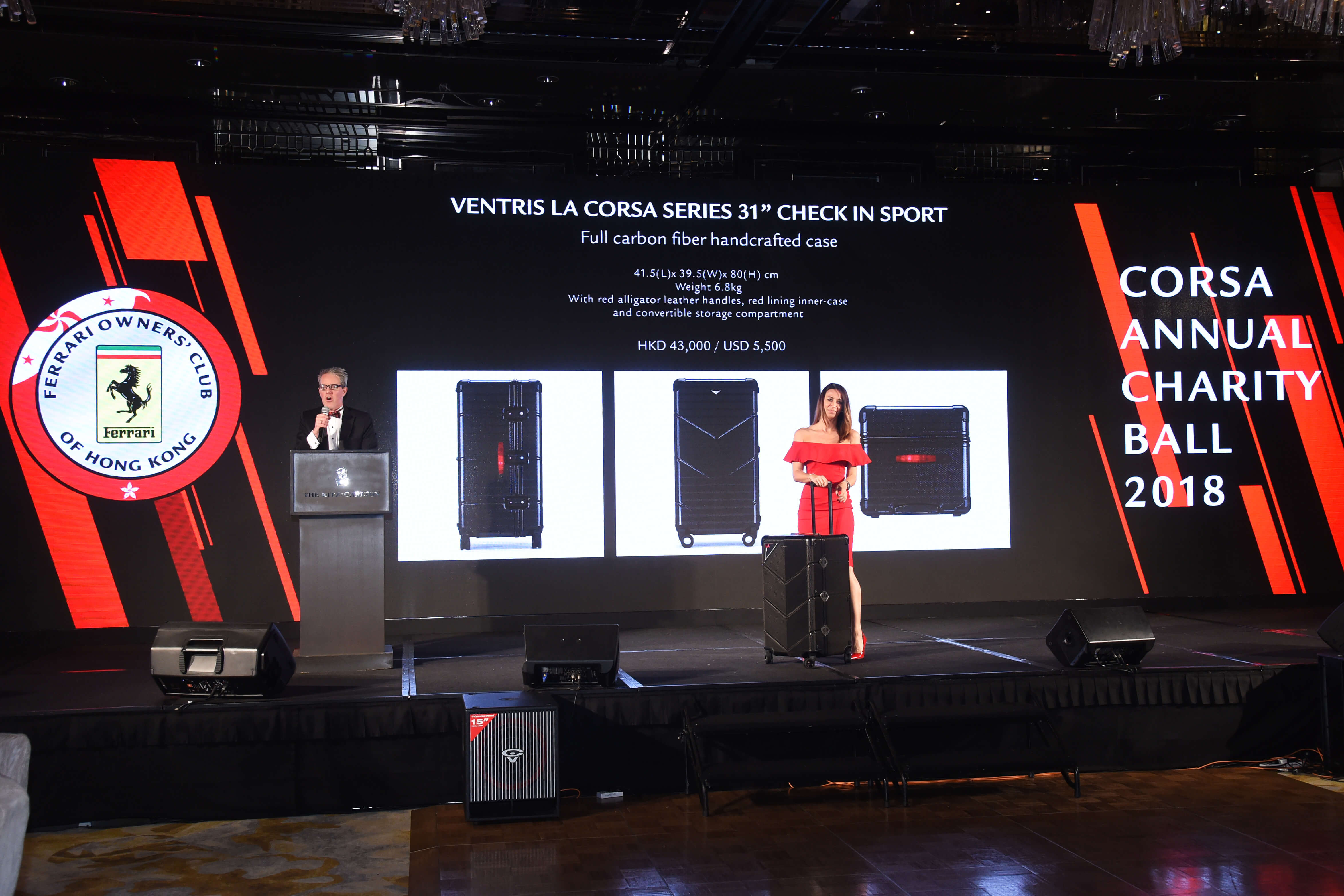 Wonderful evening in Hong Kong celebrating the festive season and supporting local charity to help children in need. Ventris Lifestyle is honored to sponsor the Corsa Annual Charity Ball 2018 organized by Ferrari Owners' Club of Hong Kong and to present the one-of-a-kind La Corsa Series full carbon fiber suitcases in this fascinating spectacle. |